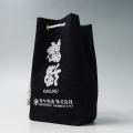 甚吉袋とはその昔、酒屋から家にお酒をお持ち帰るために使っていた通い袋。300mlの酒ビンが2本ピッタリと入ります。青木酒造の「鶴齢」をデザインした現代風の甚吉袋は、小物入れにも最適です。